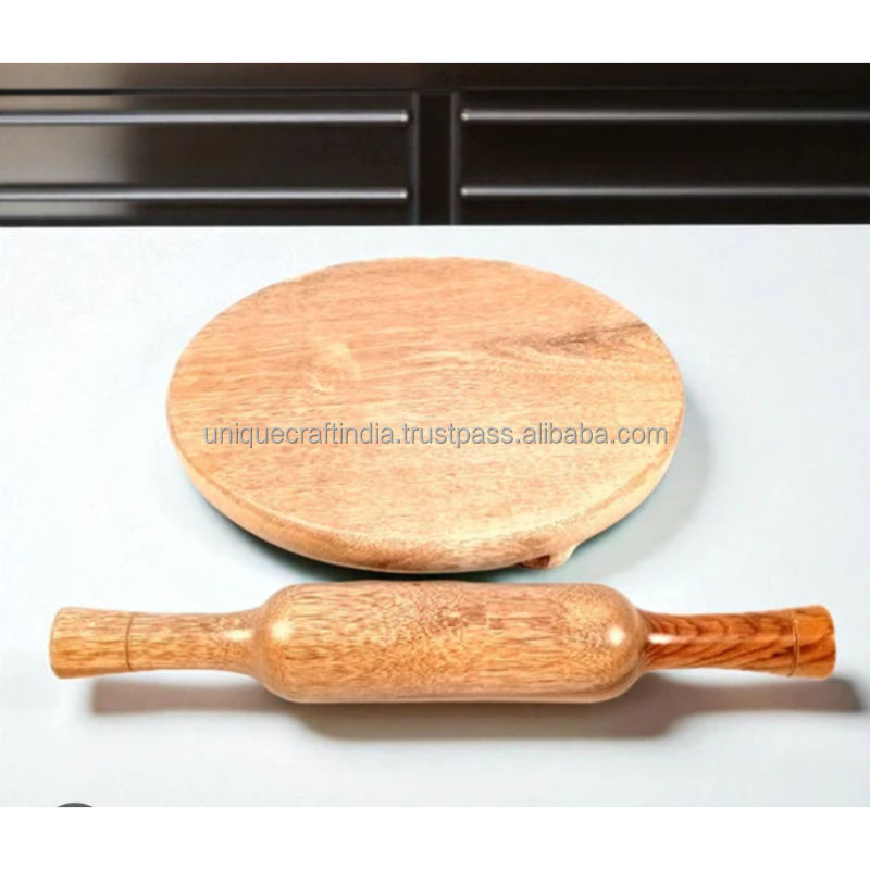 Premium Dark Acacia Wood Chakla Belan Set Handcrafted Rolling Board and Pin for Roti Chapati Kitchen and Dining Essentials