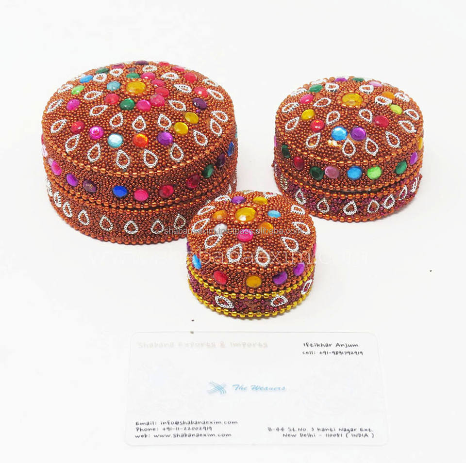 Premium Decorative Trinket Box 3 Pcs Set Craft White BeadedbJewelry Organizer Storage for Tabletop Decor Aluminium Tin Box