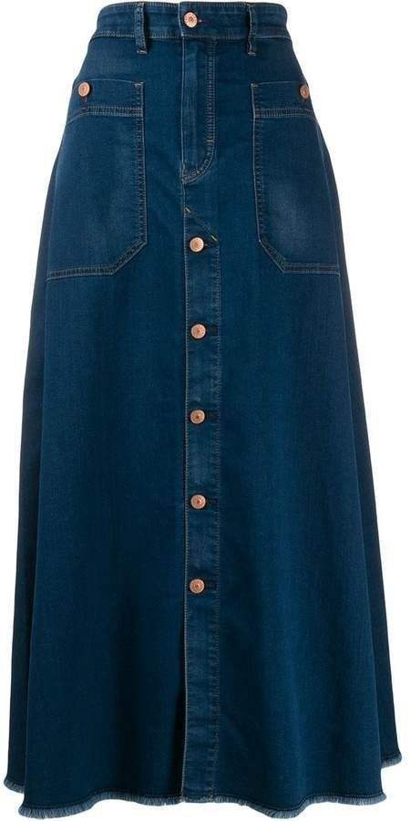 key words:Denim long split skirt