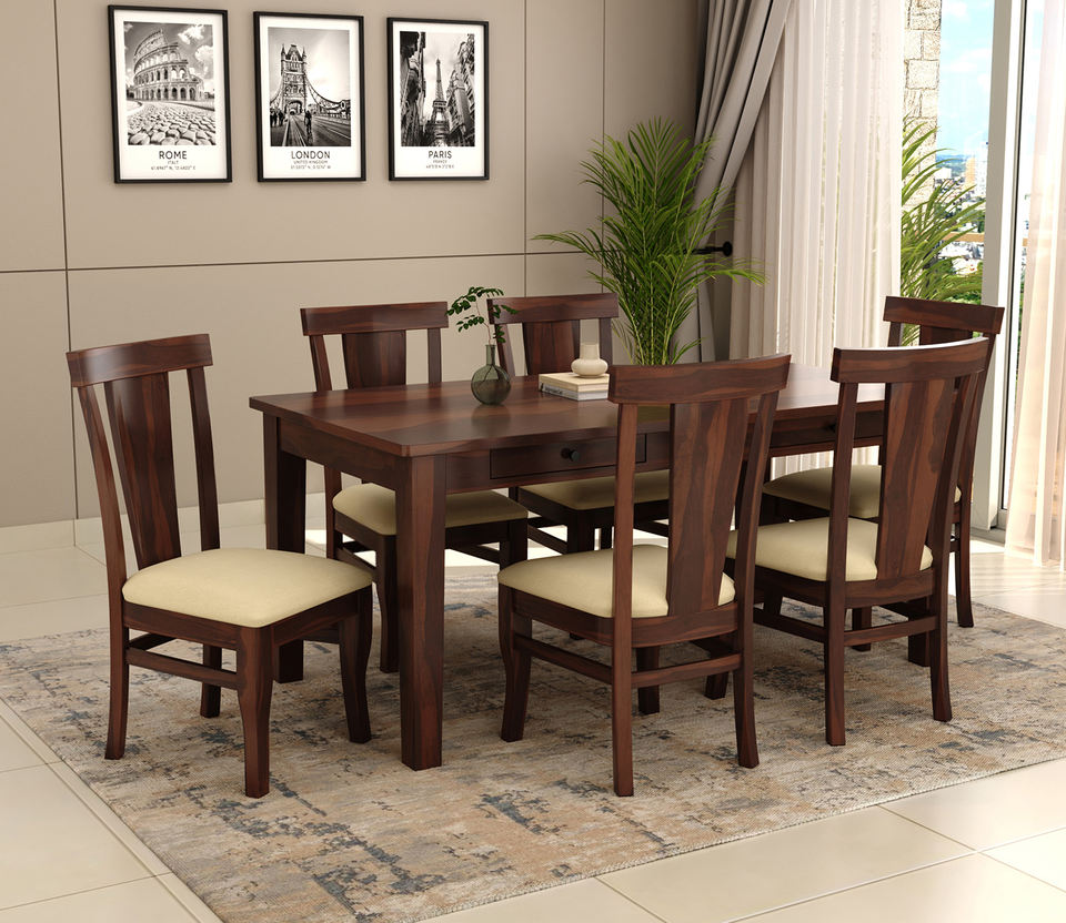 Premium Design Antique Wooden Dining Table Set with 6 Chairs Dinning Table set with Drawer Storage for Home Hotel Apartments Use
