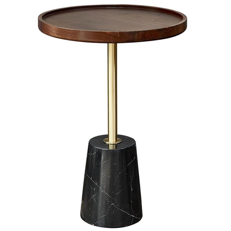 Premium Design Round Coffee Table for Home Living Room Attractive Wooden Top Heavy Marble Base Metal Rod Interior Decoration