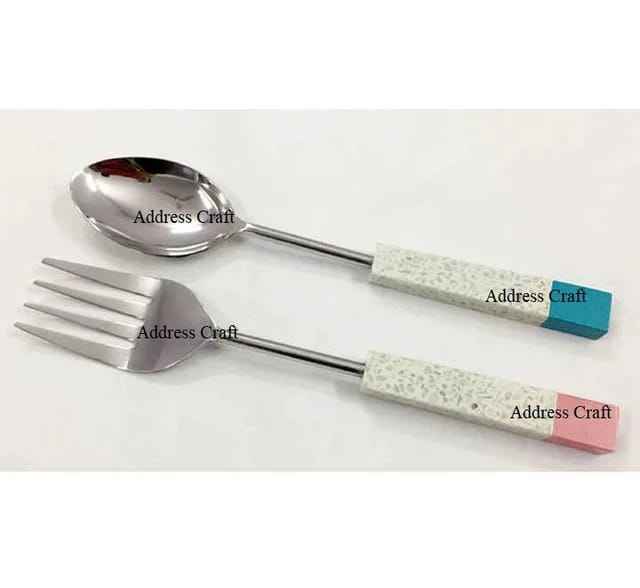 Premium Design Spoon & Fork Set With Resin Handle Gold Plated Salad Server Stainless Steel Cutlery Set Royal Family Flatware Set