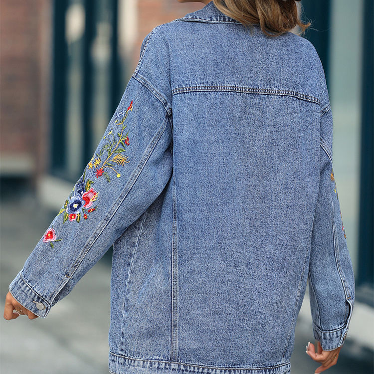 Premium Design Women's Oversized Denim Jackets with Embroidered Leopard and Diamond Designs Eco-Friendly Vintage Style