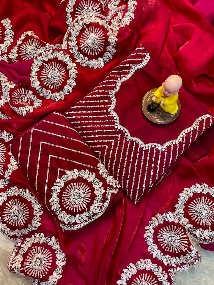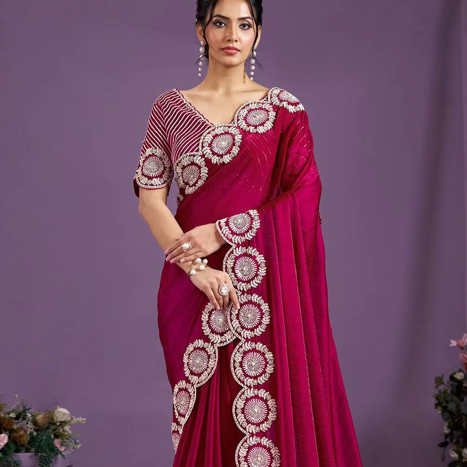 Premium Designer Arco Cut Work Border Fancy Satin Fabric with Dori Thread Sequins Embroidered for Indian & Pakistani Clothing