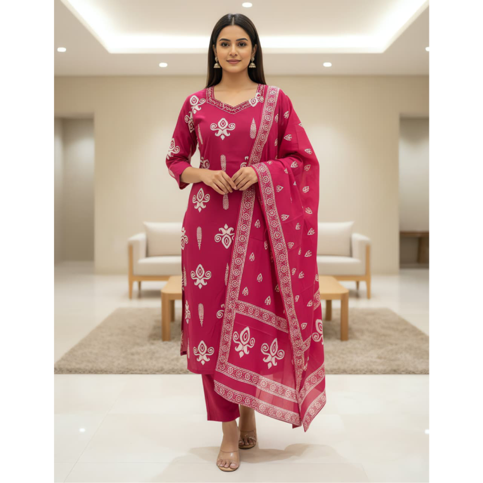 Product Name:Dhabu cotton placement print 3 pcs set