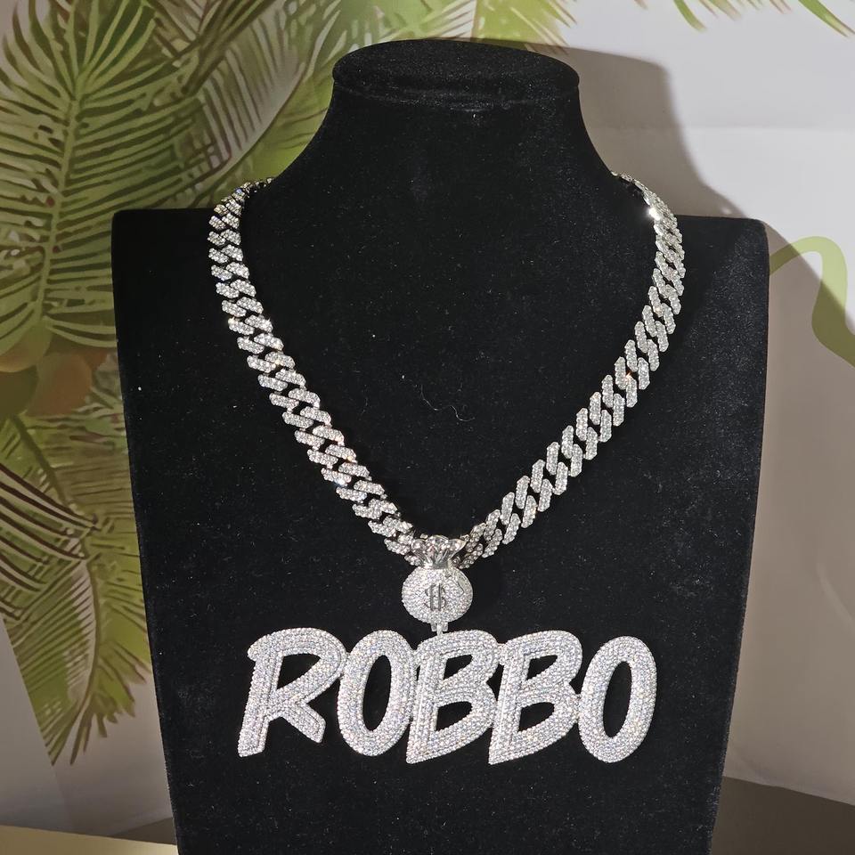 Bag Diamond Name Plate Necklace:12mm Cuban Chain