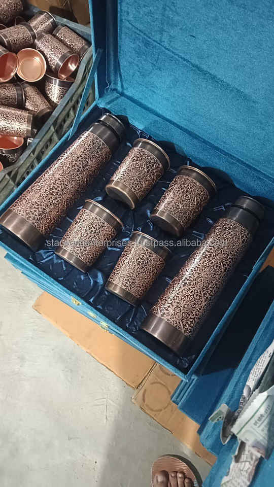 Premium Double-Wall Ayurvedic Drinkware Pure Copper Water Bottle & Mug Set with Straw Wholesale From India for Kitchen Tabletop