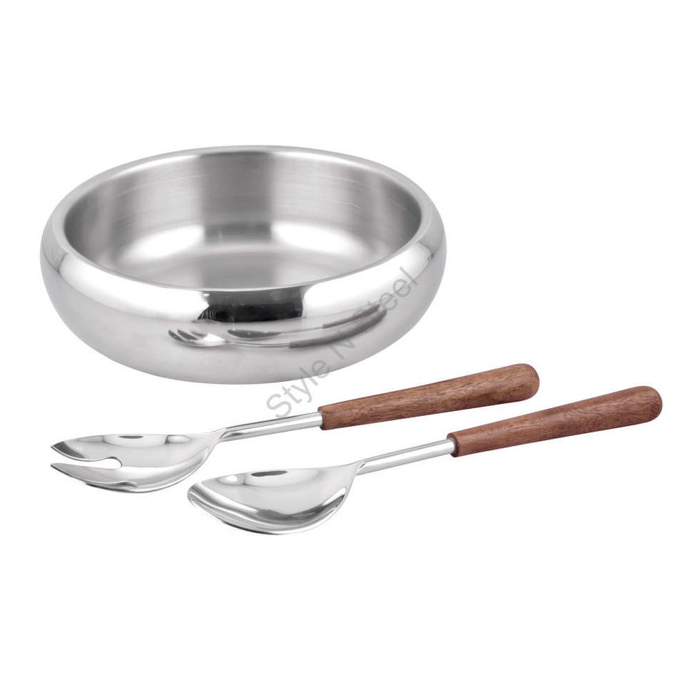 Premium Double-wall Belgium Bowl with Salad Server Wooden Handle and a Stylish Classic Design