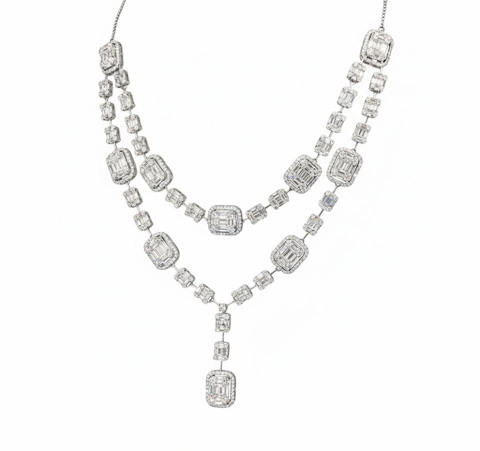 Premium Drop Grace Diamond Necklace Classic Vertical Drop Style Fine Jewelry with Brilliant Finish for Bridal Wear Evening Event