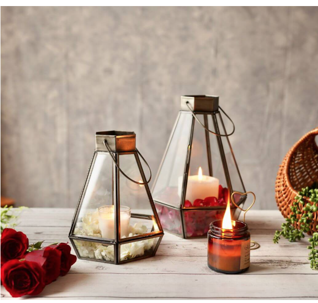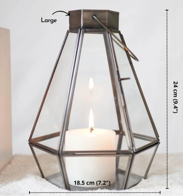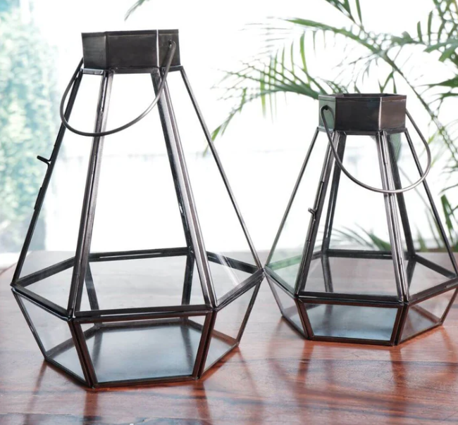 Premium Drop Lantern Nickel Black Pair 9.4 Inch and 7.2 Inch Handcrafted Decorative Candle Holder Lanterns for Wedding Reception