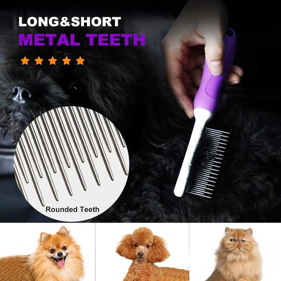 Premium Dual-Action Laser Salon Professional Pet Grooming Comb Lice Comb Cleaning Brush Stainless Steel for Shedding Detangling