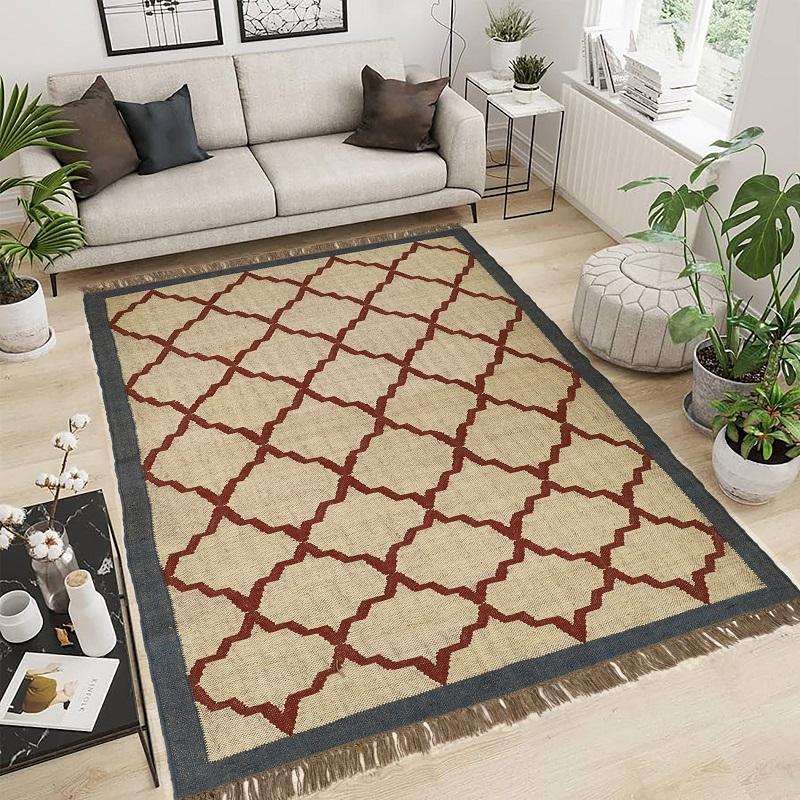 Premium Durable Handwoven Kilim Wool Jute Rug Geometric Contemporary Design for Home Interior Rustic Style for Living Room