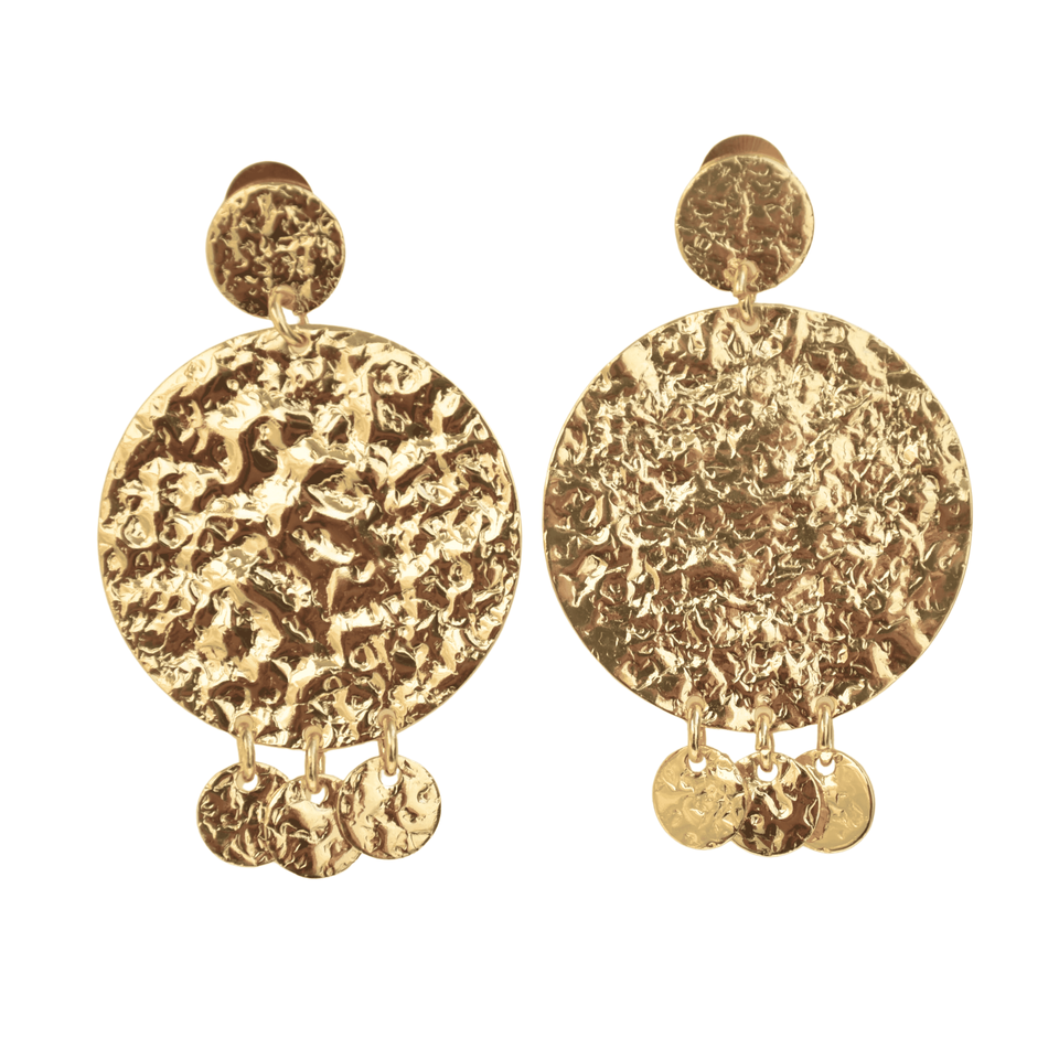 Product Name:Hammered Textured Round Statement Earrings with Mini Disc Drops