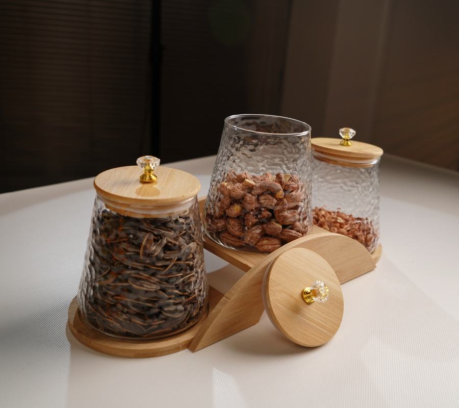 Premium Eco-Friendly Glass Storage Jars Bamboo Lid Holder Airtight Kitchen Containers for Food Tea for Restaurants Home Desktop
