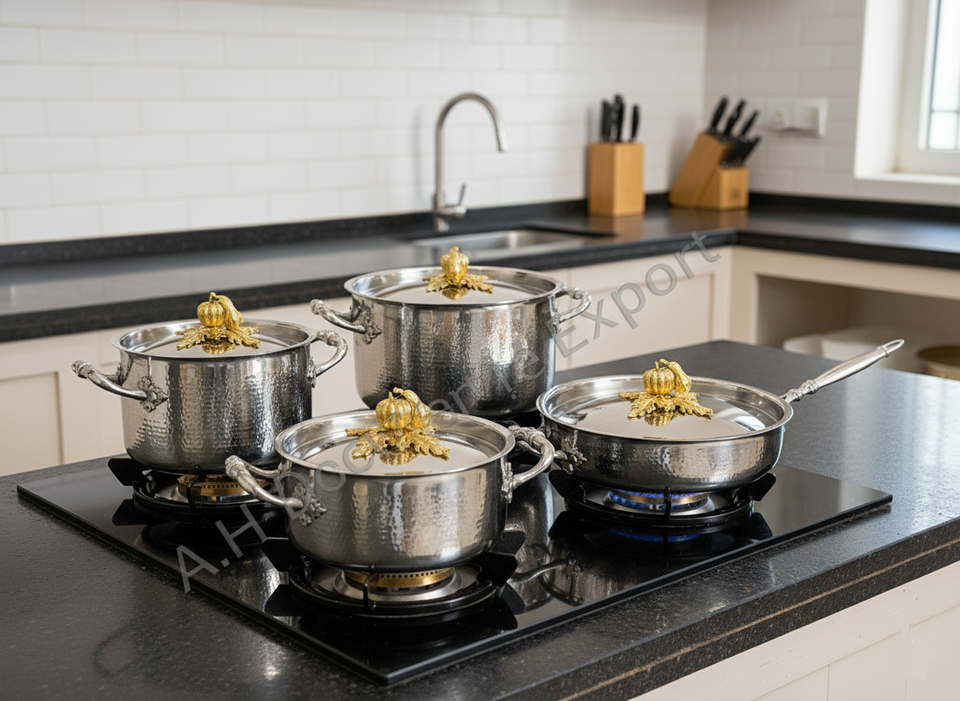 Premium Eco-Friendly Iron Deep Hammered Fry Pan with Copper Bottom Handle and Lid Professional Cookware for Home Kitchen