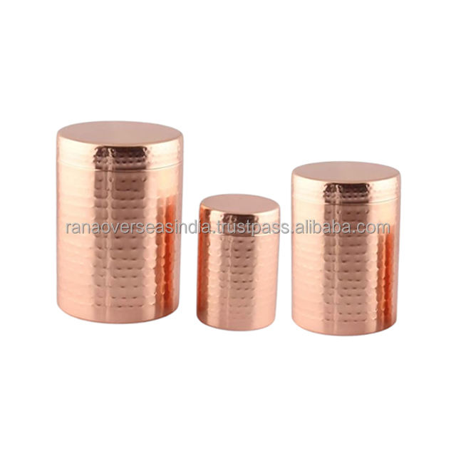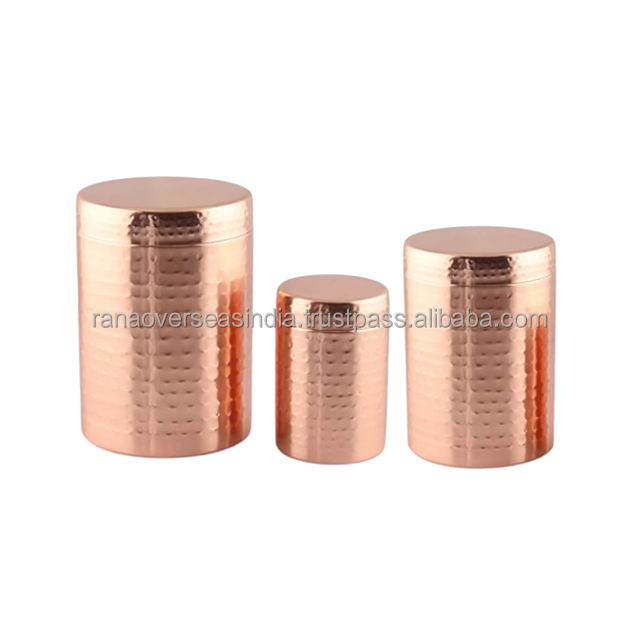 Premium Eco-Friendly Modern Luxury Hammered Design Copper Canister Set 3-Piece for Coffee Sugar & Tea with Diverse Designs
