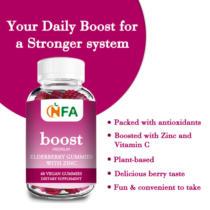 Premium Elderberry Boost Gummies with Zinc Vegan Gummies Improve Digestive Health Daily Boost Stronger System for Whole Family
