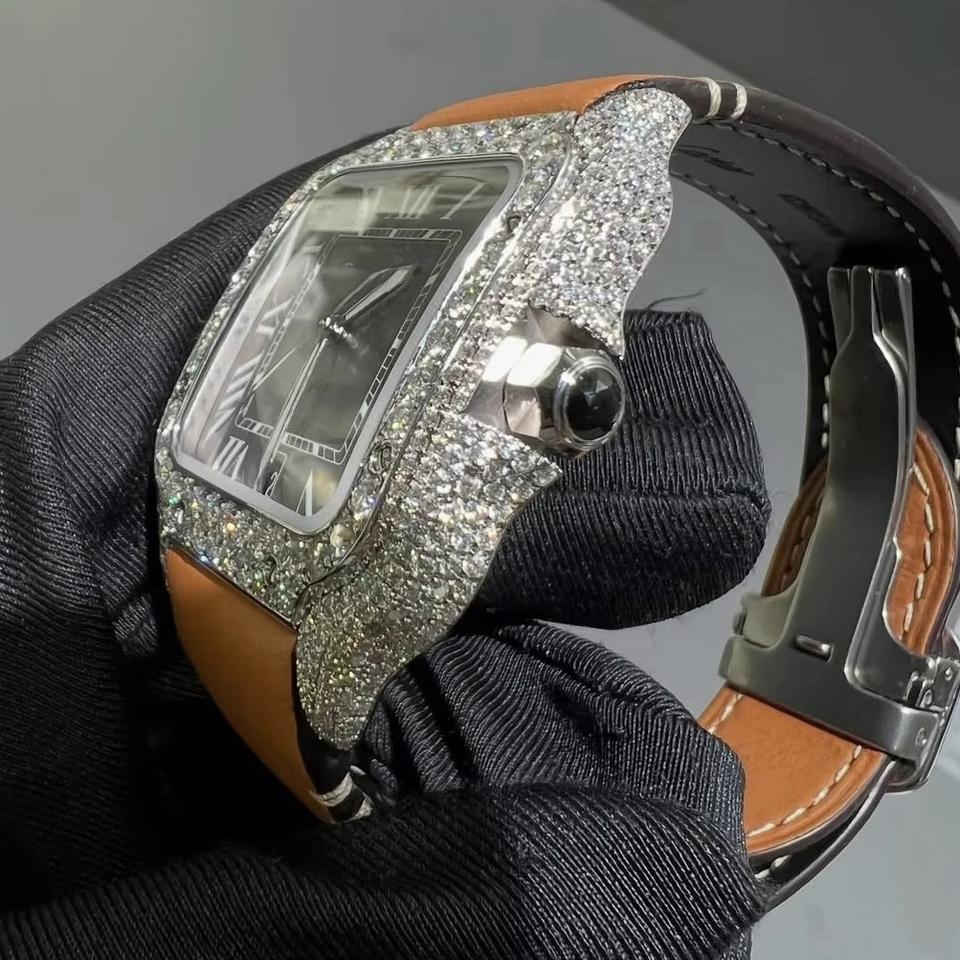 Premium Elegance Mechanical Automatic Stainless Steel Analog Watch Iced Moissanite Diamond Designed for Luxury Style Watch