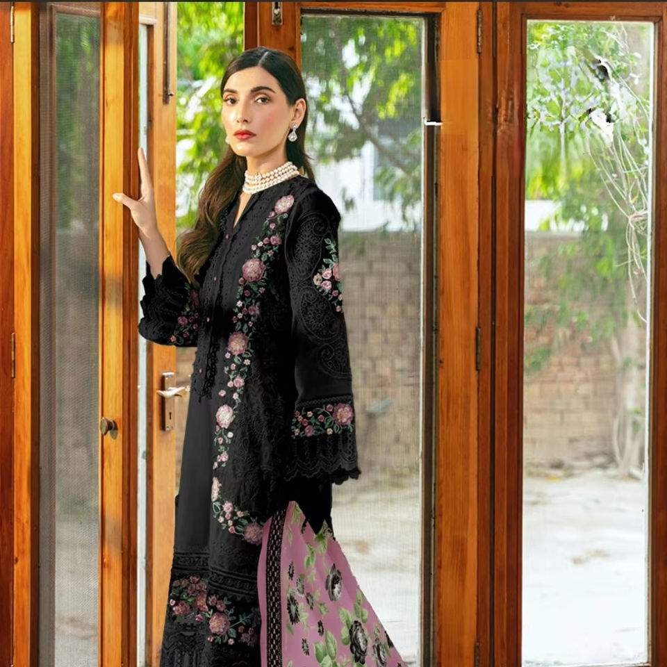 Premium Elegant Indian Pakistani Clothing Stylish Hand Embroidered Tunic Set with Digital Print Dupatta Elegant Neck Sleeves