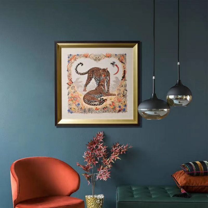 Premium European Vintage Silk Print Painting Wall Art Retro Fashion Framed Decor