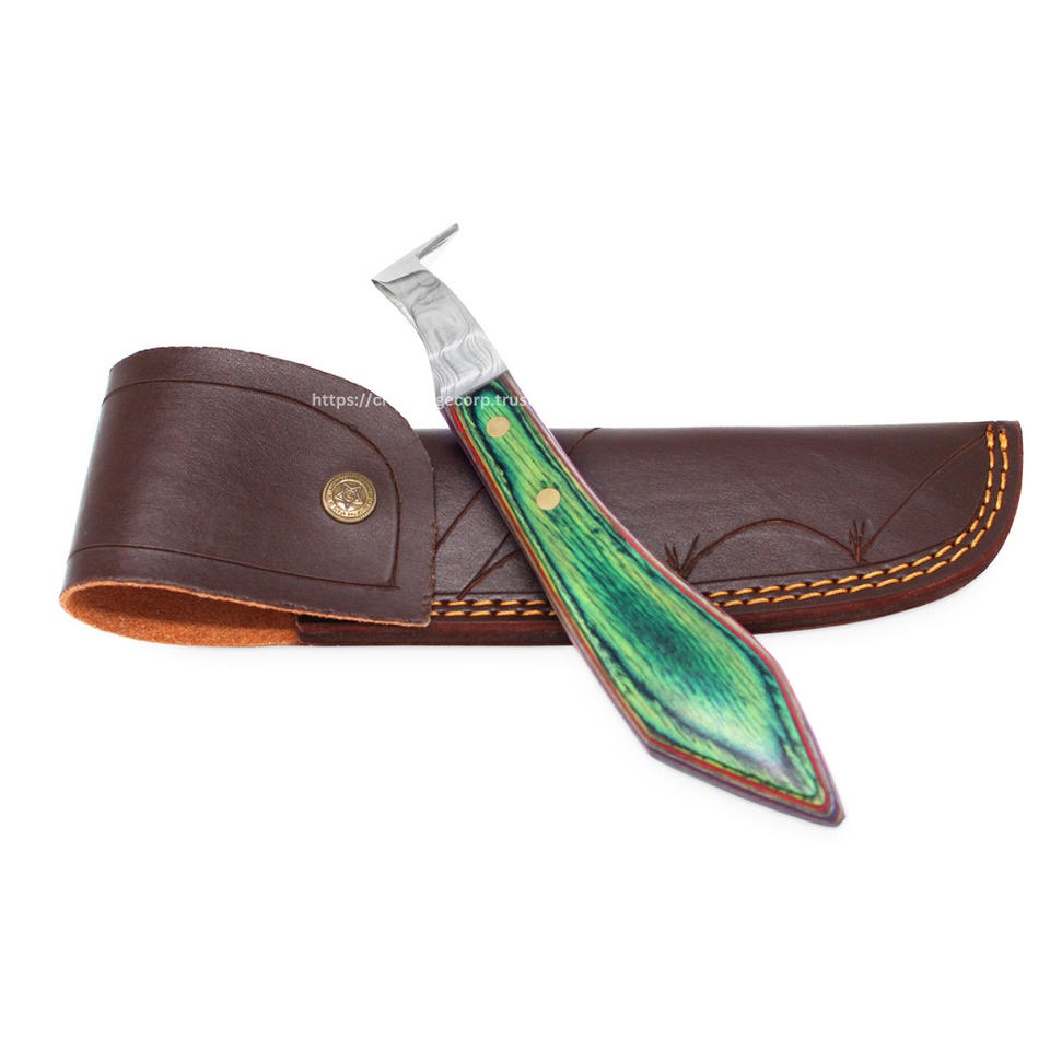 Premium Farrier Horseshoeing Supplies Loop Knife with Pick Pet Grooming Tools with Polished Wood Handle Custom Logo