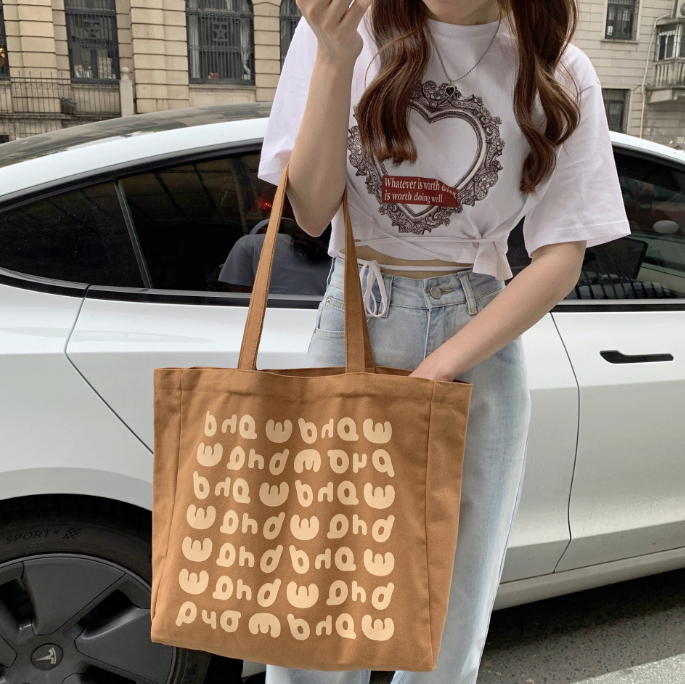 High Quality Cotton Canvas Women's Gym Tote Large Capacity One Shoulder Strap Custom Logo Fashionable Striped Shopping Bag