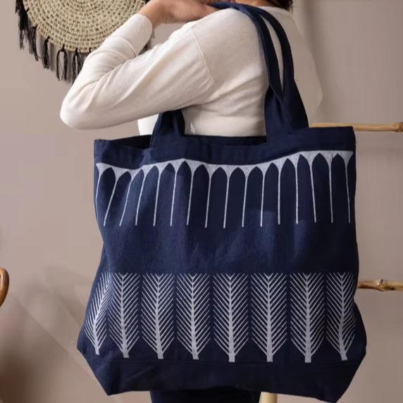Premium Fashion Lady Egyptian Cotton Canvas Lining Zipper Tote Lightweight Durable Daily Commute Shopping Bag