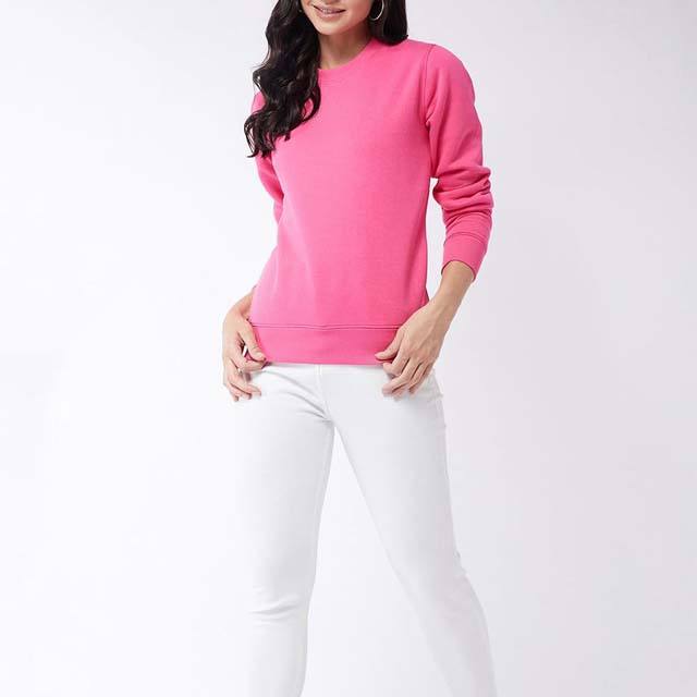 Premium Fleece Crewneck Sweatshirts with Customized Logo Design Winter Wear Cotton Pink Color Women's Hoodies Sweatshirts