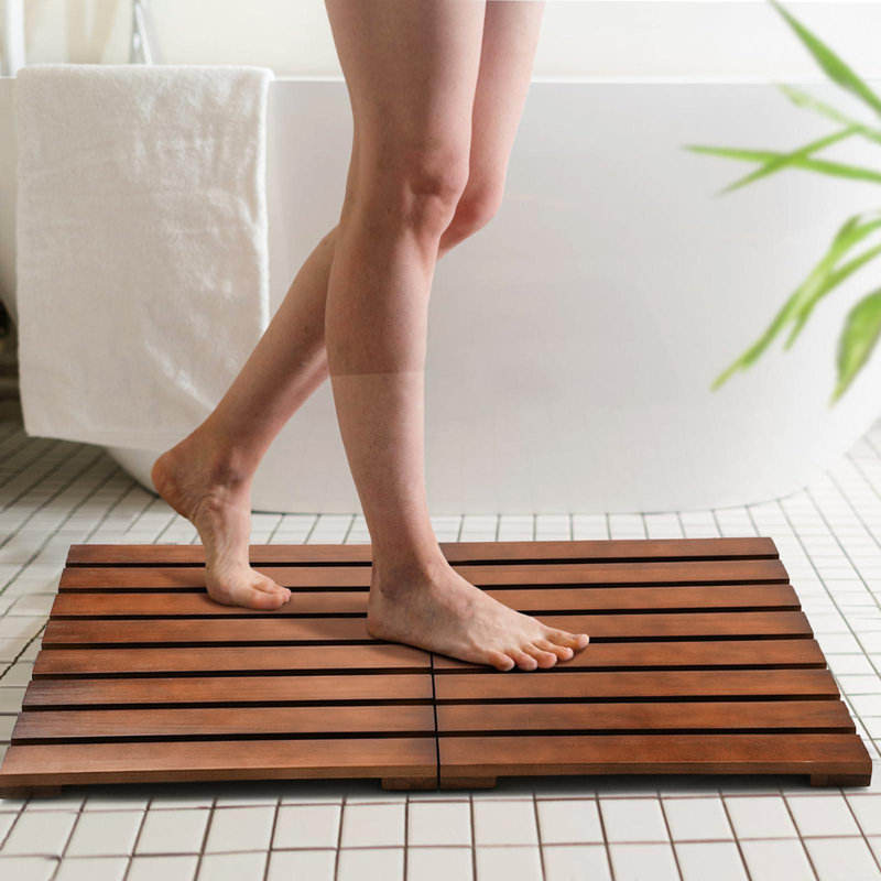 Premium Foldable Bamboo Bath Mat Absorbent Wooden Shower Mat with Solid Pattern Made From Diatom Rubber PVC for Bathroom Use