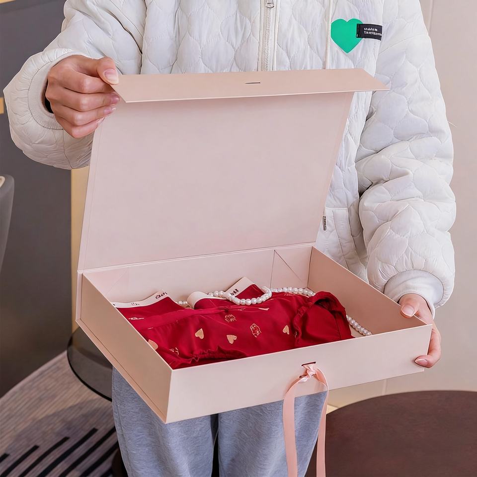 Premium Foldable Paper Packaging Gift Box Manufacturer for Underwear Socks Bra Underwear Gift Box with Ribbon and Gift Handbag