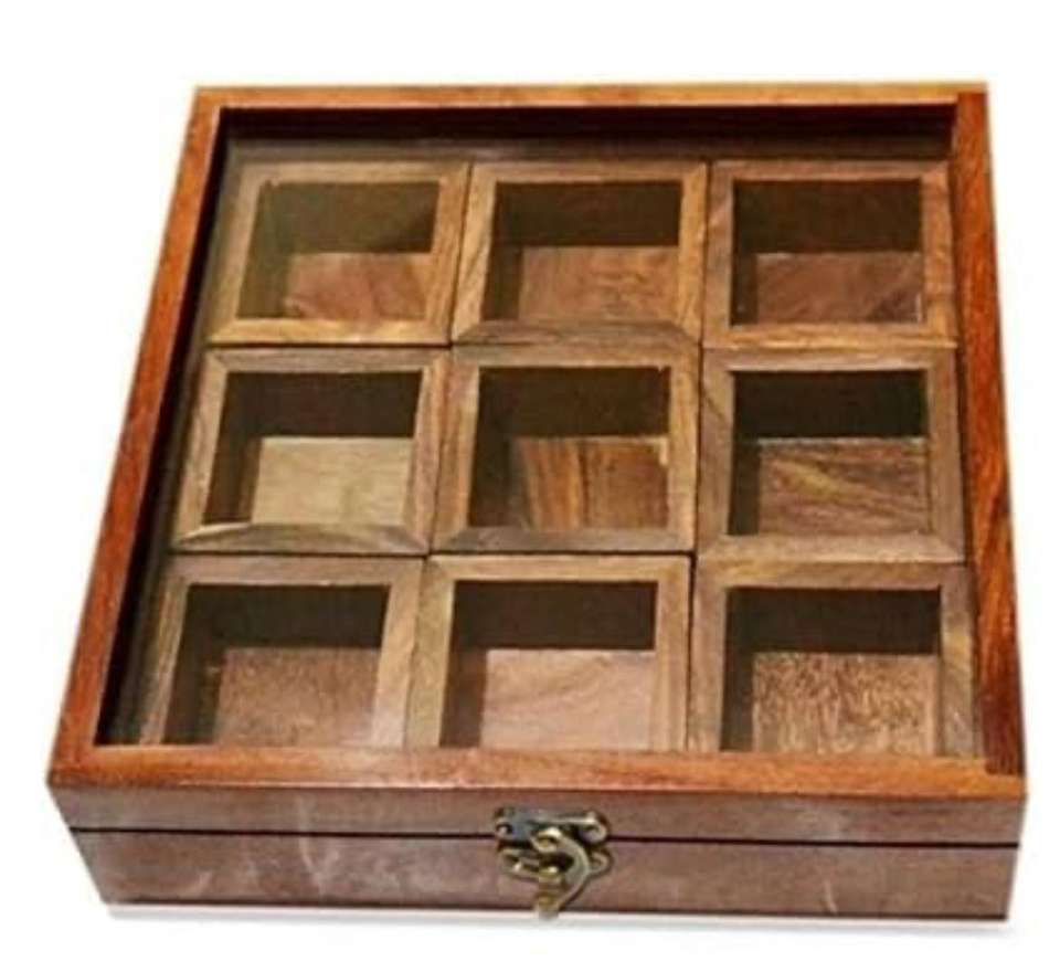 Premium Food Grade Eco-Friendly Sheesham Wood Handcrafted Spice Box Masala Dabba with Lid for Home Use