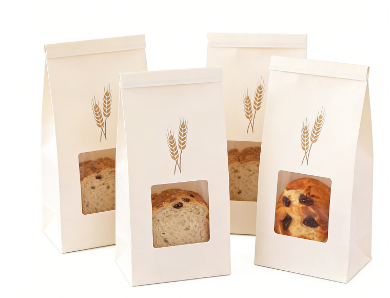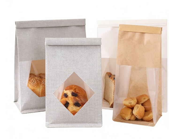 Premium Food Grade Window Kraft Paper Stand Up Pouches Resealable Oil-Proof Bags for Fresh Bread and Baked Goods Packaging