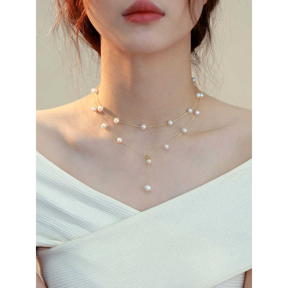 Premium French Gypsy Women's Multi-Wear Chain Natural Pearl Necklace Long Sweater for Autumn Winter Fashion Layered Necklaces