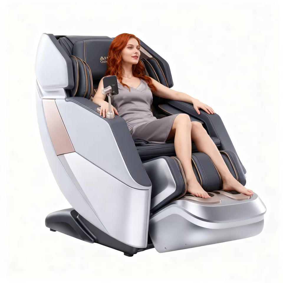 Dual-Core 4D+3D Full Body AI Voice Control Massage Chair Electric Extendable Footrest Heat Airbags Wheel Controls Extended SL