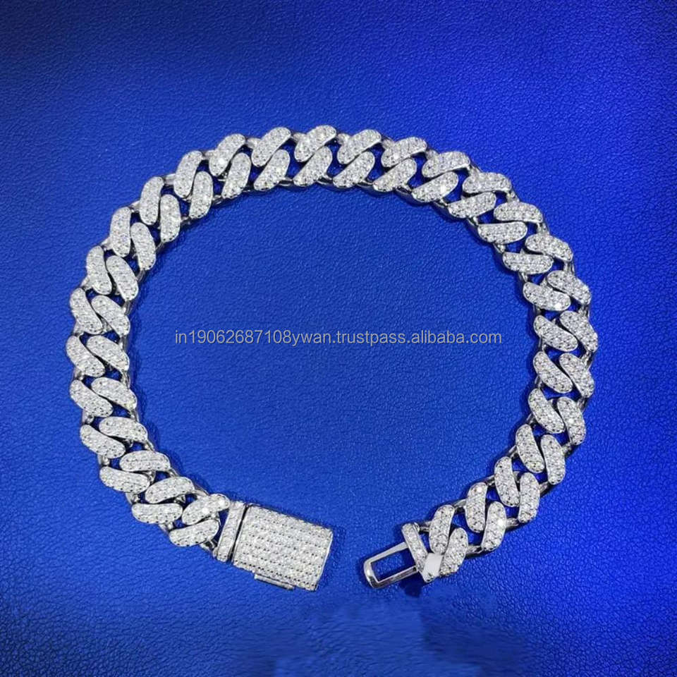 Premium Fully Sparkling Cuban Link Bracelet With VVS Lab Diamonds Silver Tone Iced Hip Hop Jewelry For Men And Women