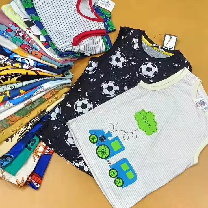 Premium Summer Tank Tops Girls Boys Made Cotton Street Wear Children Bangladesh Wholesale Branded Apparel Stock 7-Day Sample