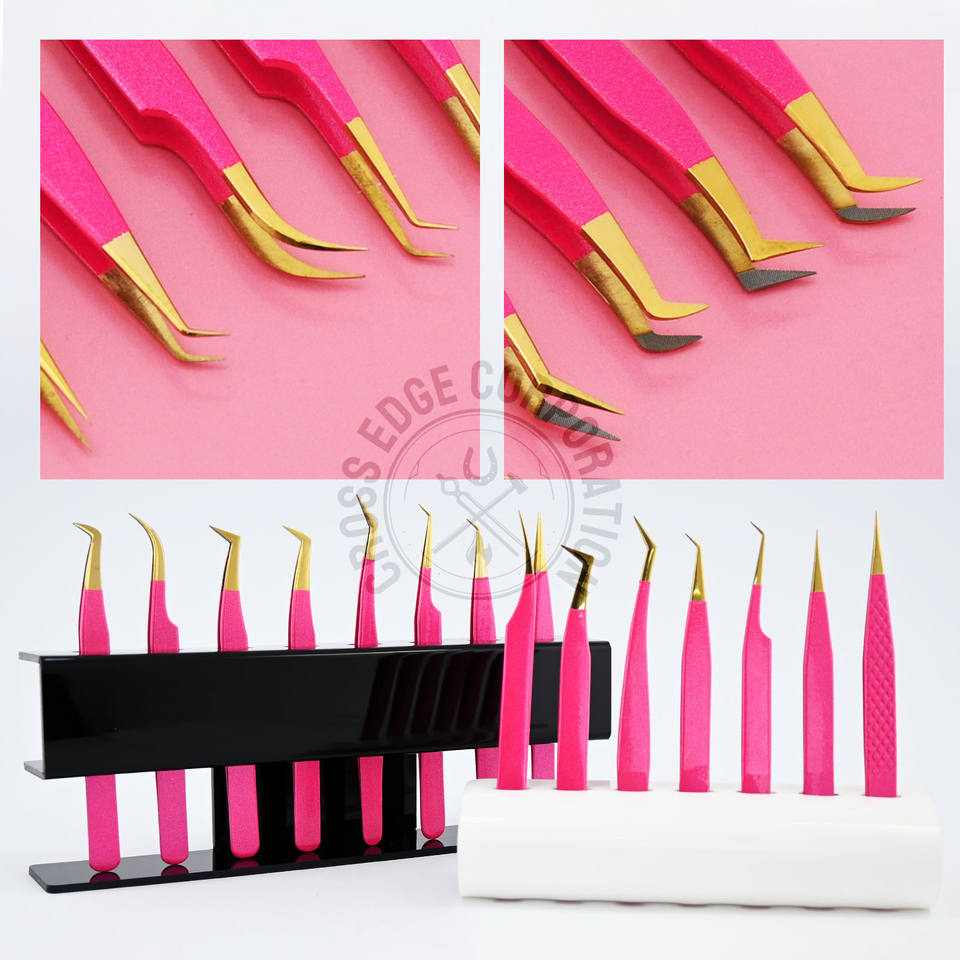 Product name:Glitter Pink Plane Grip Eyelash Tweezers Pink Box Packing Isolation