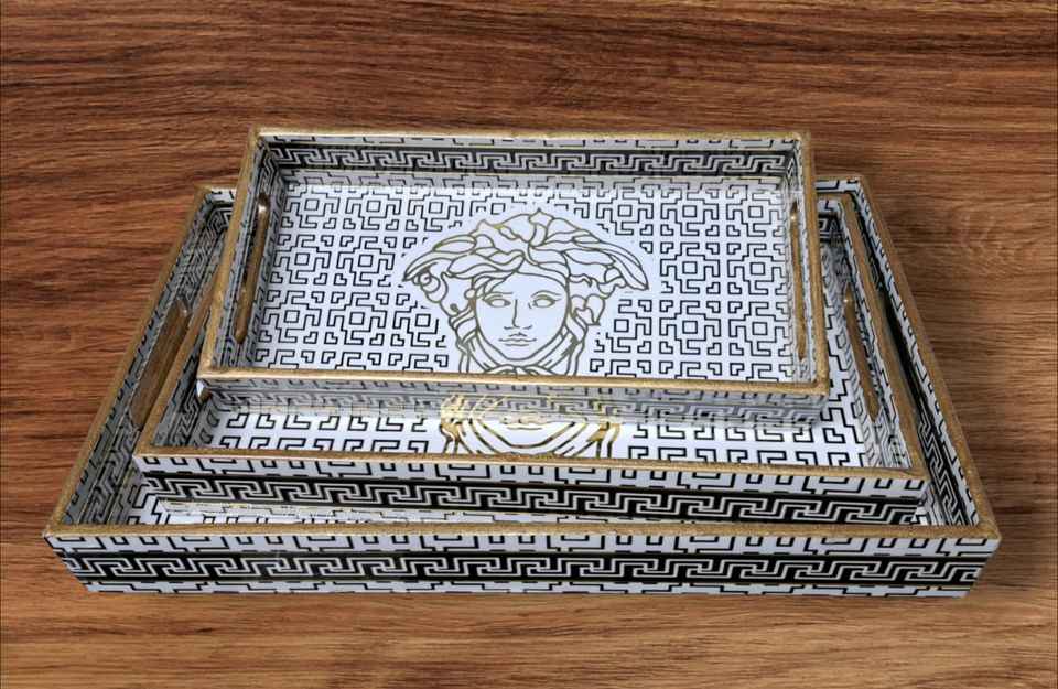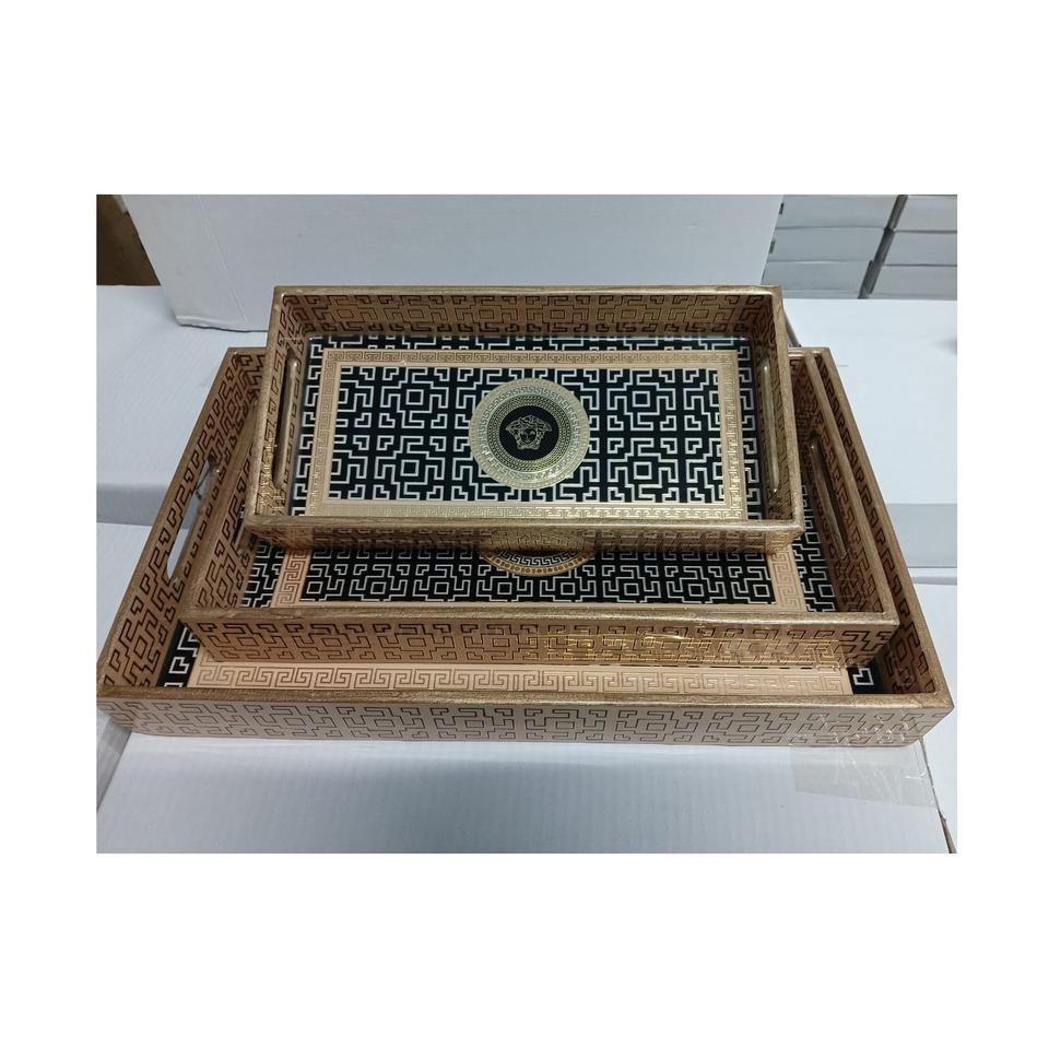 Premium Glossy Printed Wooden Tray Set with Gold Foil Finish Durable and Stylish Serving Tray for Coffee Snacks Use