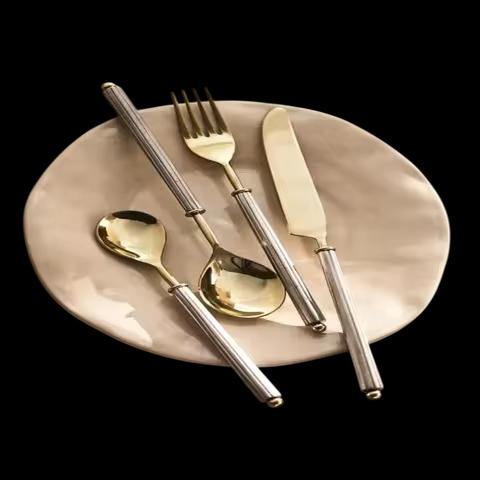 Premium Gold-Finished Stainless Steel Cutlery Set Spoon & Fork Scoops for Tea Coffee Sugar Condiments Spices