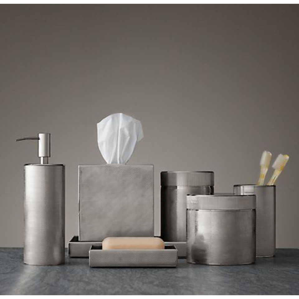 Premium Gold Hotels Decor Bathroom Set Ribbed Metal Finish Soap Dispenser Tumbler Tissue Box Soap Dish Dust-Proof Bathroom Set