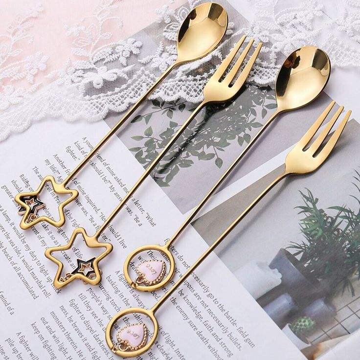 Premium Gold Long Handle Spoon Fork Stainless Steel Star Heart Pendant Coffee Dessert Mixing Spoon Elegant Decorative Cutlery