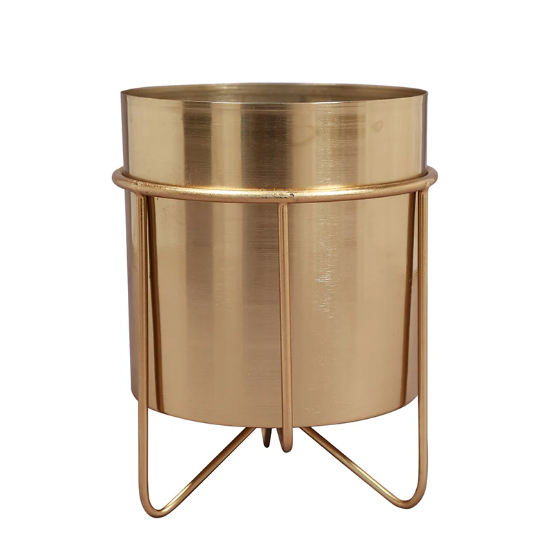 Premium Gold Metal Planter with Wire Stand Modern Decorative Indoor Pot for Living Room Tabletop & Home Decor