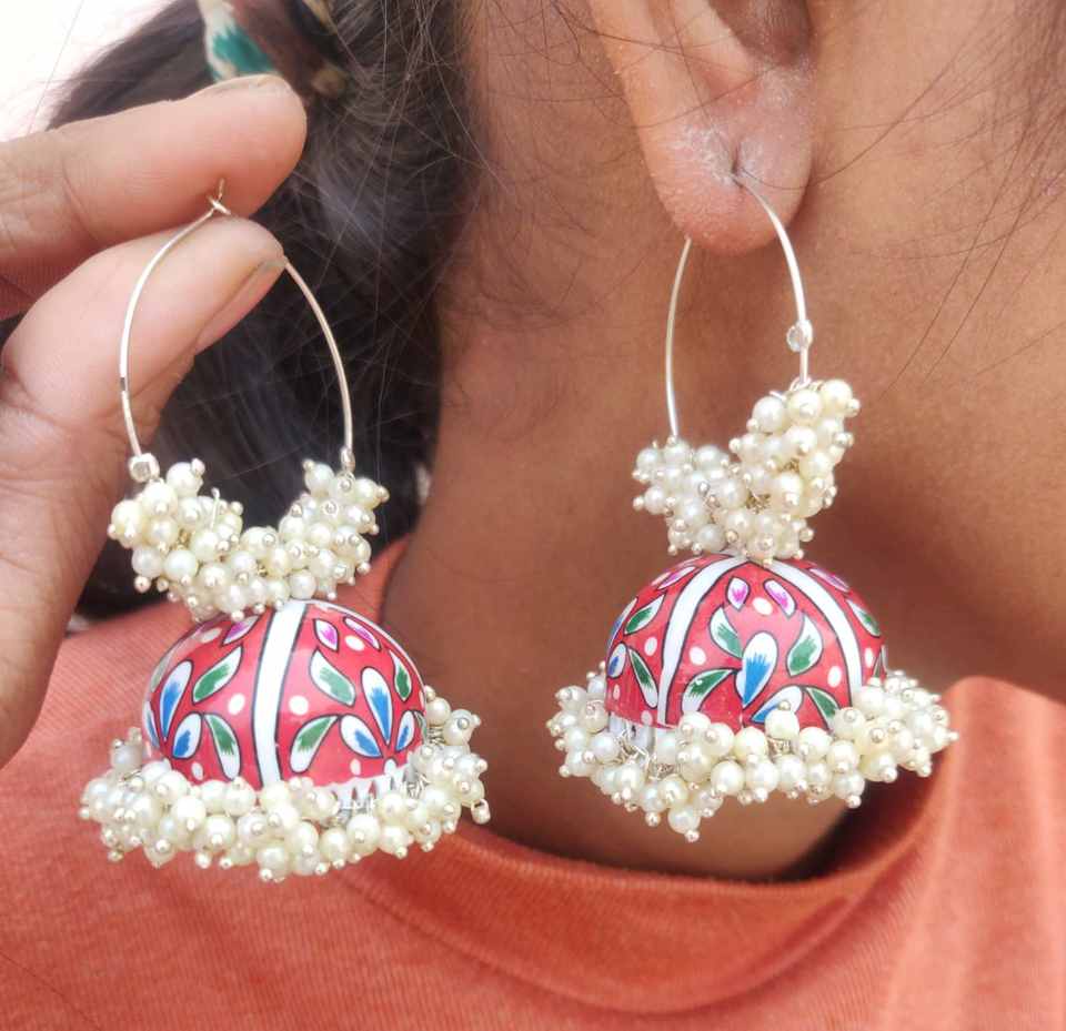 Premium Gold-Plated Meenakari Jhumki Earrings for Women Handcrafted Traditional Jewelry with Intricate Enamel Work Pearl Stone