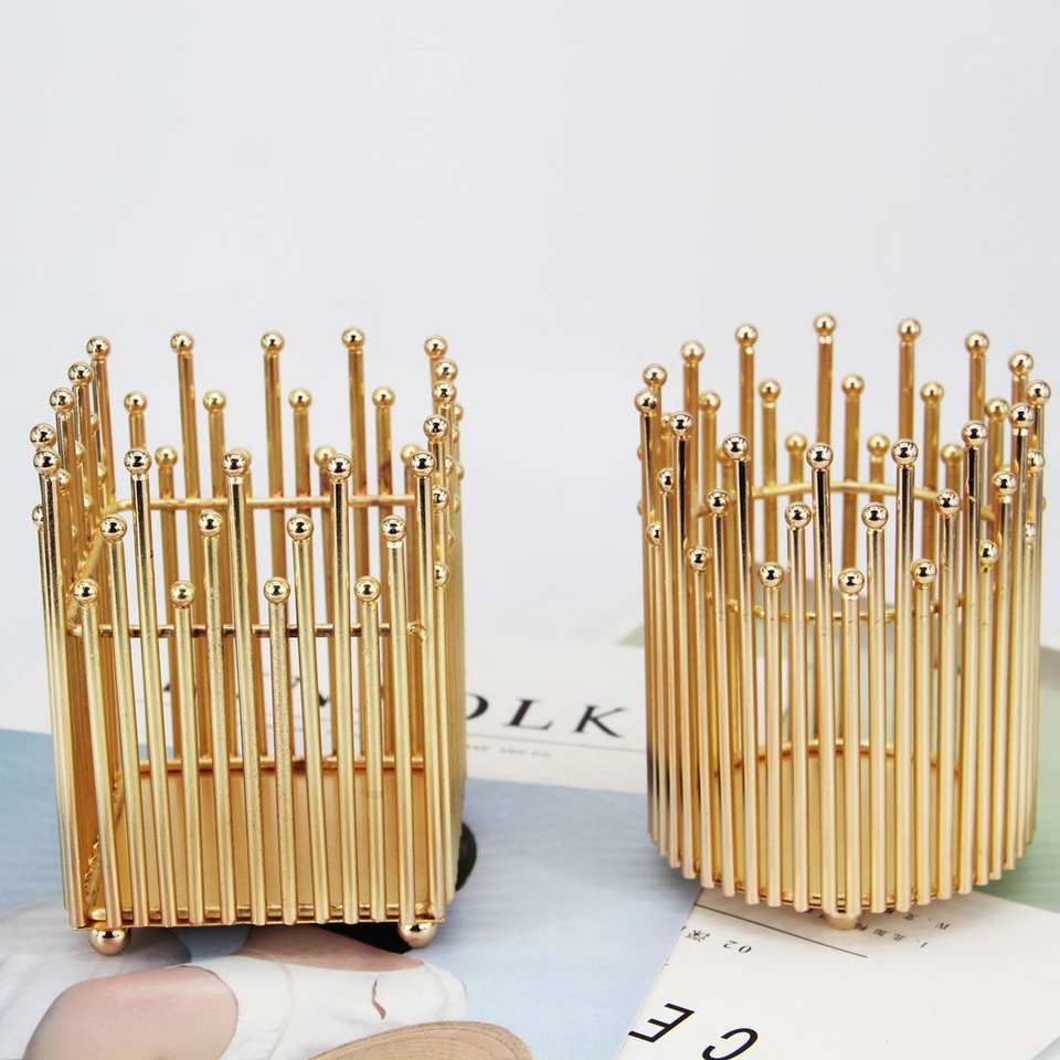 Premium Golden Desk Organizer with Unique Square and Round Compartments Stylish and Durable Pen Holder for Office and Home