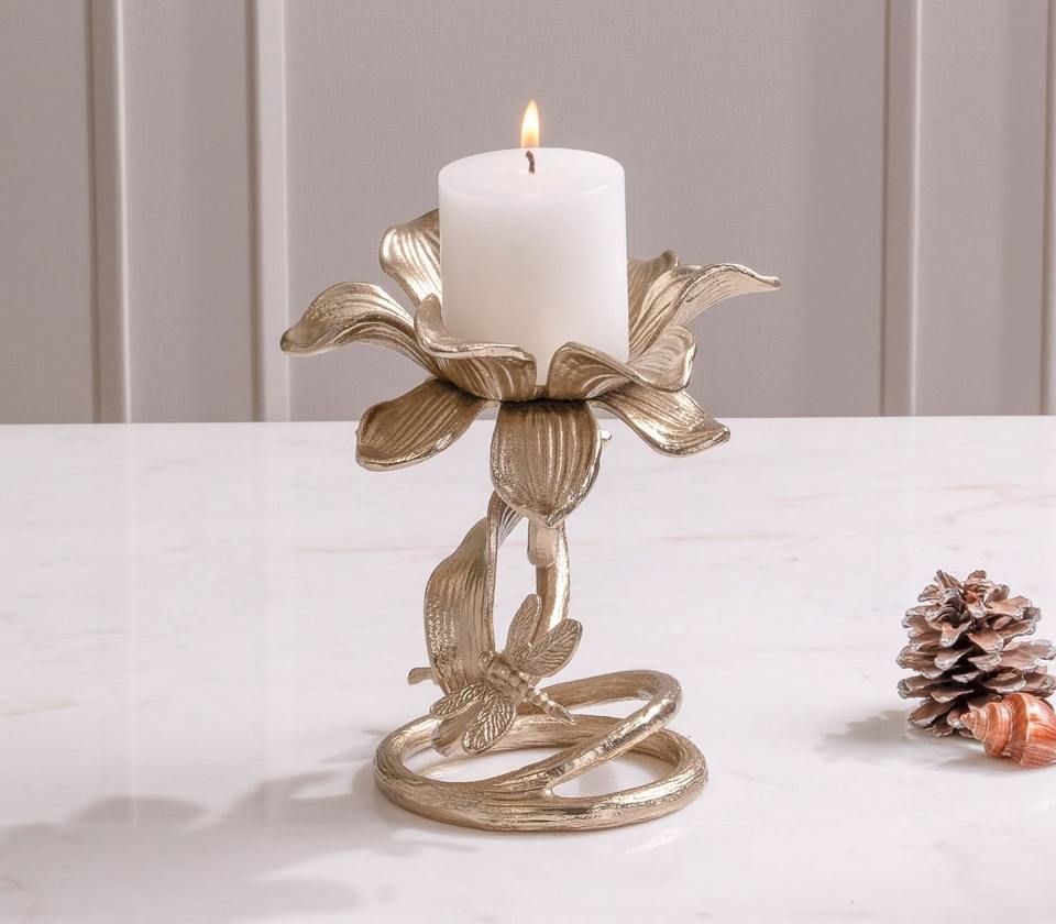 Premium Golden Finished Aluminium Candle Holder With Floral Design Add Sophisticated Cozy Stylish And Elegant Touch To Any Space