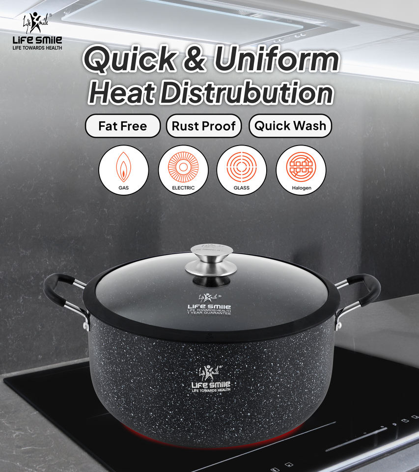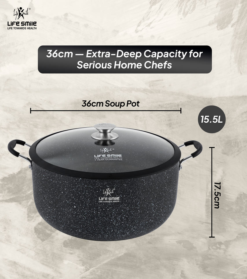 Premium Granite Non-Stick Soup Pot with Glass Lid and Silicone Rim