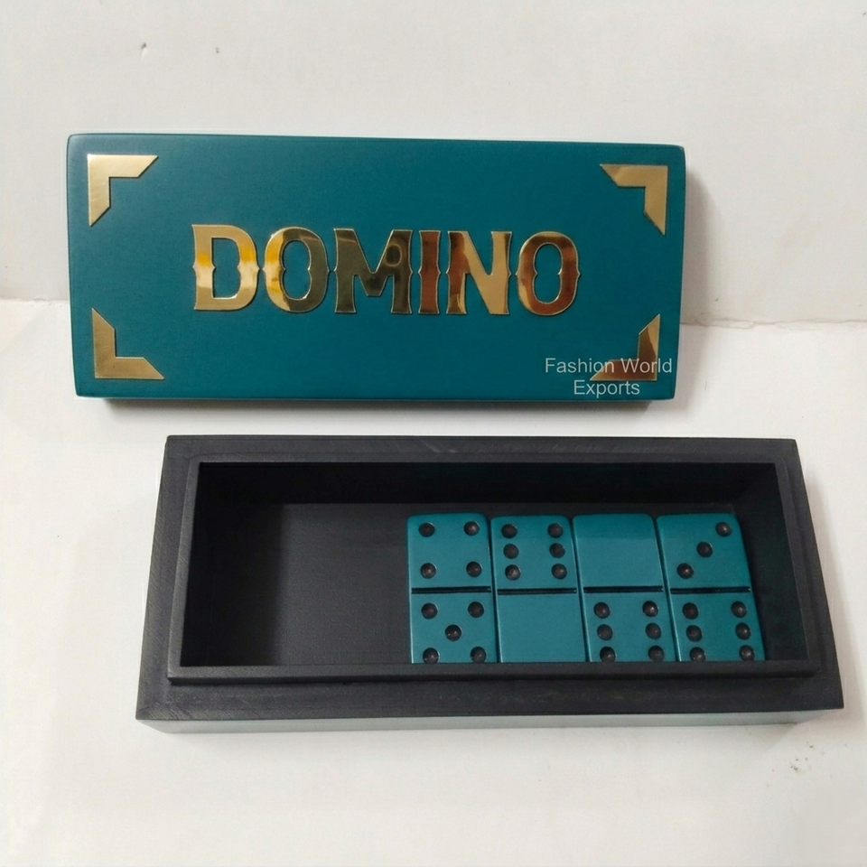 Premium Green Resin Domino Game Set with Matching Storage Box and Elegant Gold Letter Lid Design