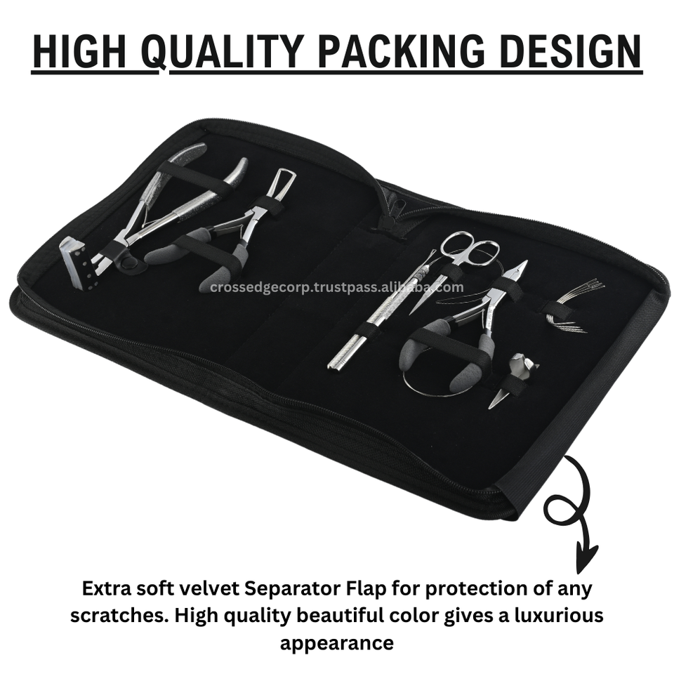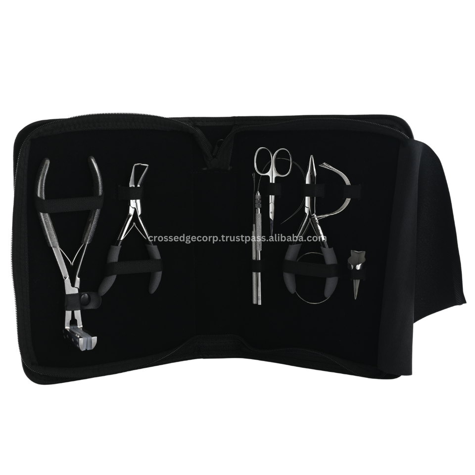 Premium Hair Extension Kit Set Tape-In Pressing Ring Removal Plier Parting Comb Ring Fine Edge Trimming Scissors Bead Loop Hook