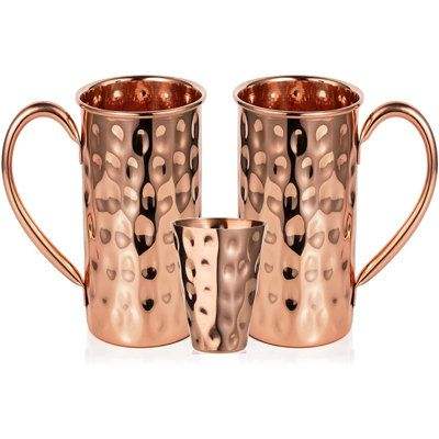 Premium Hammered Copper Jug & Cup Set 100% Pure Copper Water Pitcher Heavy Duty Copper Carafe for Health & Wellness Copper Jug