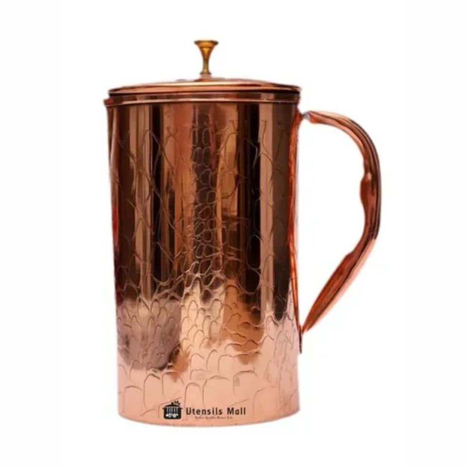 Premium Hammered Pure Copper Pitcher & 2 Glass Set Authentic Ayurvedic Copper Water Carafe for Wellness Copper Jug With Glasses
